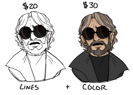 *Prices may vary. Props and Weapons are an additional 15USD each depending on complexity. Full body may charge 85 depending on complexity of armor/design.